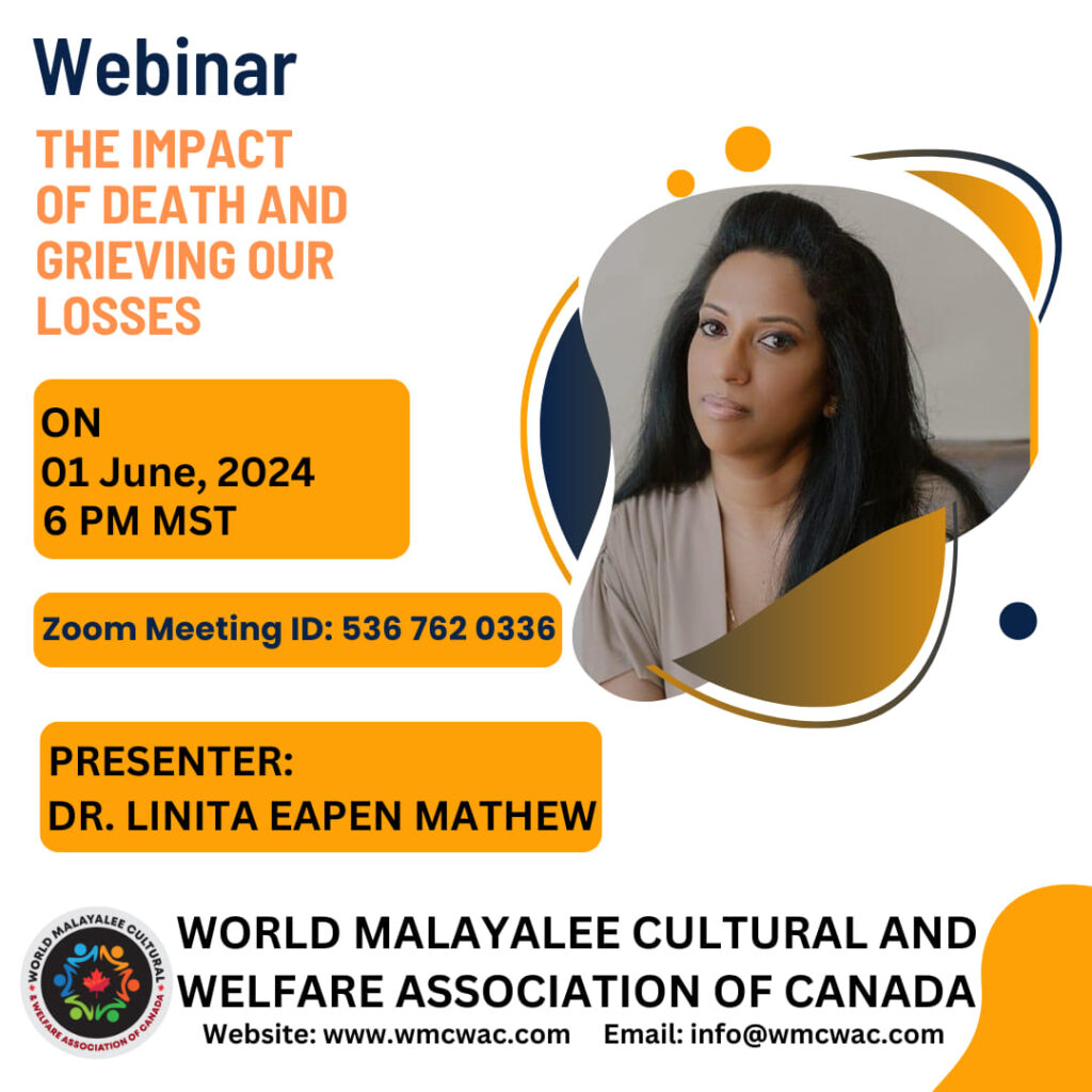 Join us for an insightful webinar on the impact of death and grieving our loses by Dr.Linita Eapen Mathew.